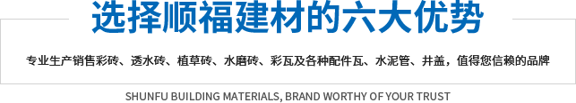 襄陽順福建材有限公司在 04年4月份建廠,12年成立公司,是一家集彩磚、植草磚、彩瓦、水磨磚、水泥制品生產、銷售于一體的企業。繼承了我國秦磚漢瓦的文化精髓,引進先進的生產工藝,進行改良,防滑程度好、檔次高、質量過硬。本公司生產的高強度彩色路面磚規格多、品種全、花樣新,產品具有透水透氣、抗壓抗凍、防滑耐磨、低碳環保、美觀大方、質優價廉等特點。公司產品廣泛應用于市政工程、人行道、小區、休閑廣場、停車車位、步行街、公園游覽場,具有古樸、簡潔、大方、耐久、歷史感強等特點,深受用戶青睞......